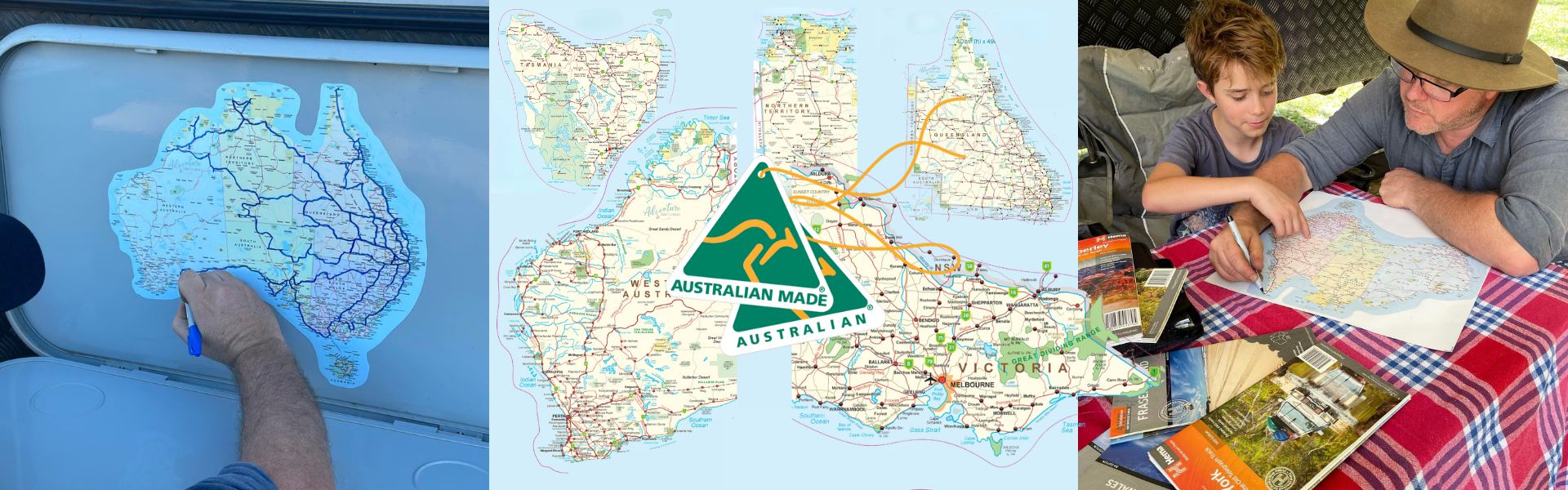 Our Map of Australia Stickers are all around 40cm high - the perfect size for a fridge door, caravan drop down table etc...